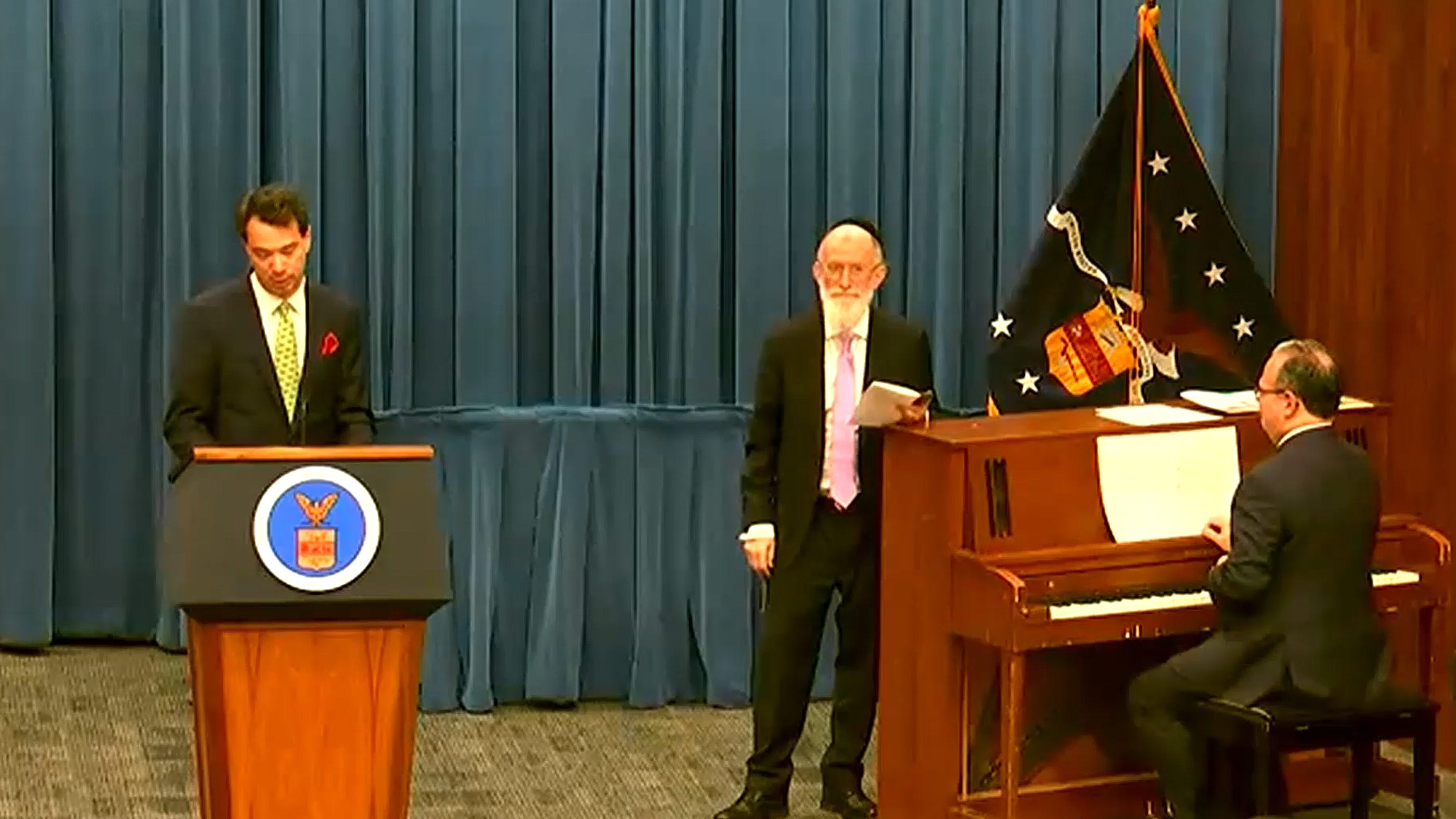 Wolfe started the DoL service with a traditional Catholic prayer: “Direct, we beseech thee, O Lord, all our actions by thy holy inspiration, and carry them on by thy gracious assistance so that every work and prayer of ours may begin from thee and through thee be happily ended. We ask this in thy name, amen.” Wolfe noted at the start that the service would “celebrate the season of Advent with Scripture and song” and “commemorate” Hanukkah “with a guest faith leader.”