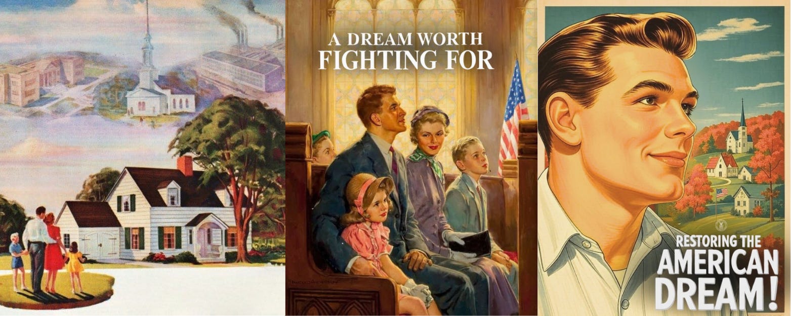 Two of the posters, which feature churches in the background, are attempts to portray Christianity as supporting this vision of a White male-led society. The churches aren’t leading the way but expected to silently support the administration’s attacks on immigrants and support of patriarchy.